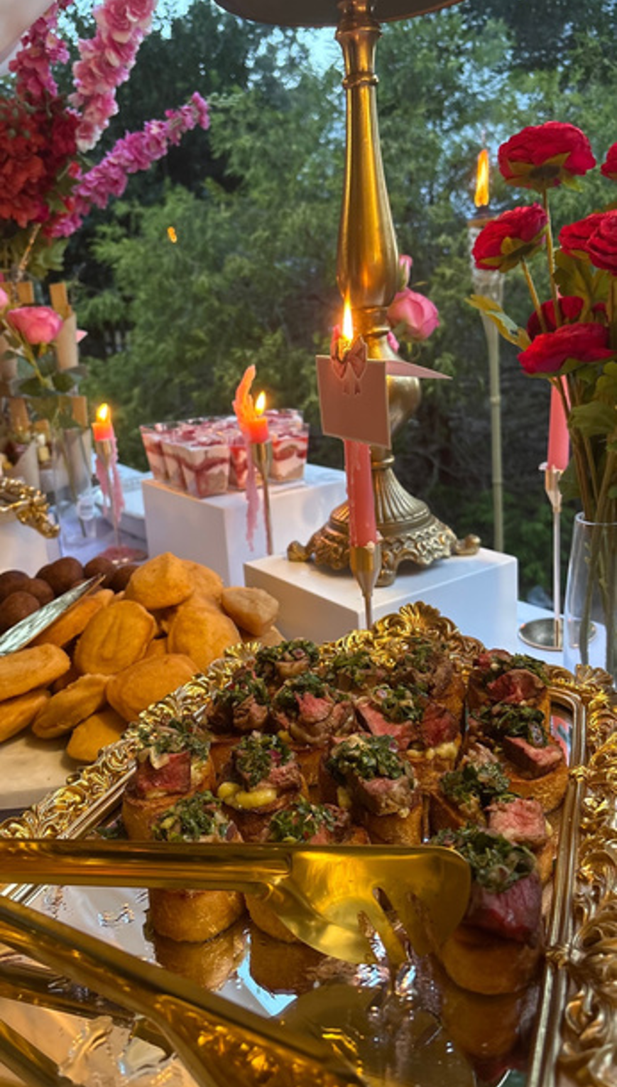 Girl… the presentation??? Actually crazy. Like people kept coming up to me asking who did the setup because it didn’t look like regular catering at all. The food was sooo good and not basic. I’m not even joking, there were things I swear I would never eat and I ended up loving them. The pinks, the gold, everything was giving exactly what I wanted.